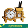 Brass Desk Clock with Pen Holder – Analog Table Clock for Office Desk, Study Table & Gift Use