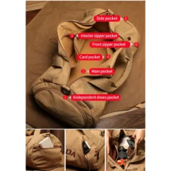 But what sets this canvas bag apart from the rest is its unique shoe-keeping special pocket. Say goodbye to awkwardly stuffing your shoes in with your clothes or worrying about them getting crushed in transit. This special pocket allows you to keep your shoes separate and protected, so you can travel with ease and style.