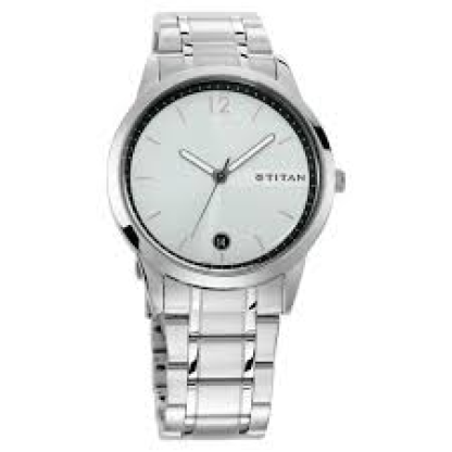 Titan Quartz Analog with Date White Dial Stainless Steel Strap Watch for Men