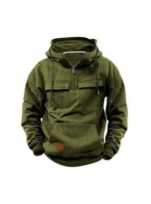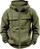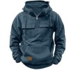 New autumn-winter men's hooded solid-color casual hoodie - fashionable young man's multi-pocket patch hoodie pullover shirt