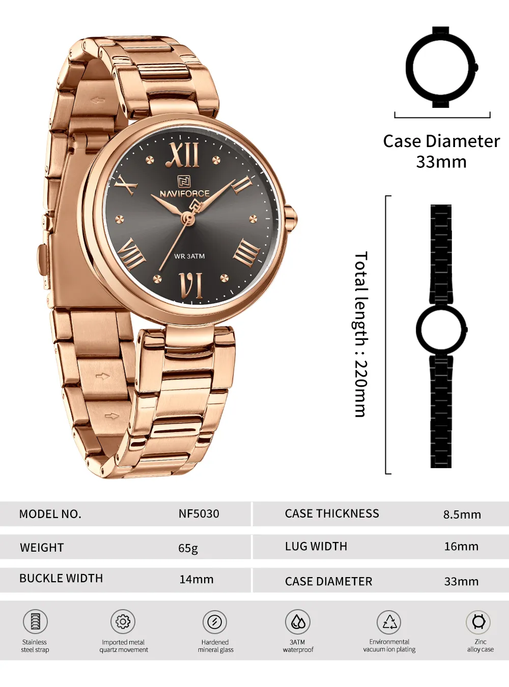 Experience luxury without compromise. NF5030 blends stunning design with affordability, offering a timepiece that adds value to your style.