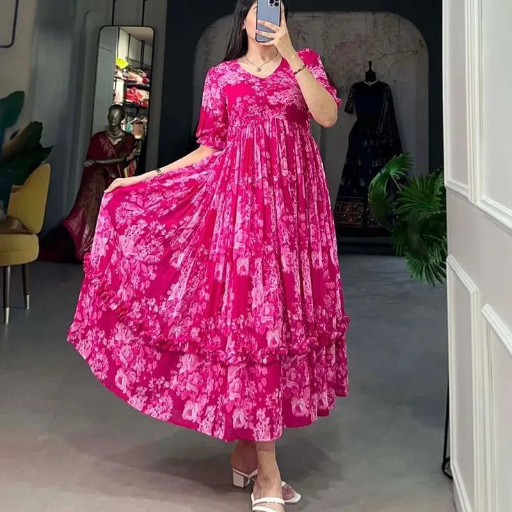 New Malti collor Exclusive Cotton Designed Digital pint work 1piece long kurti For Stylish Women