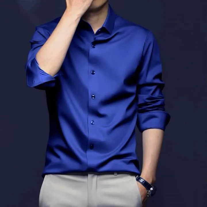 • ct details of New Stylist Silk Long Sleeve SilemFit Shirt For Men-