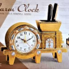 Brass Desk Clock with Pen Holder – Analog Table Clock for Office Desk, Study Table & Gift Use