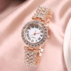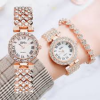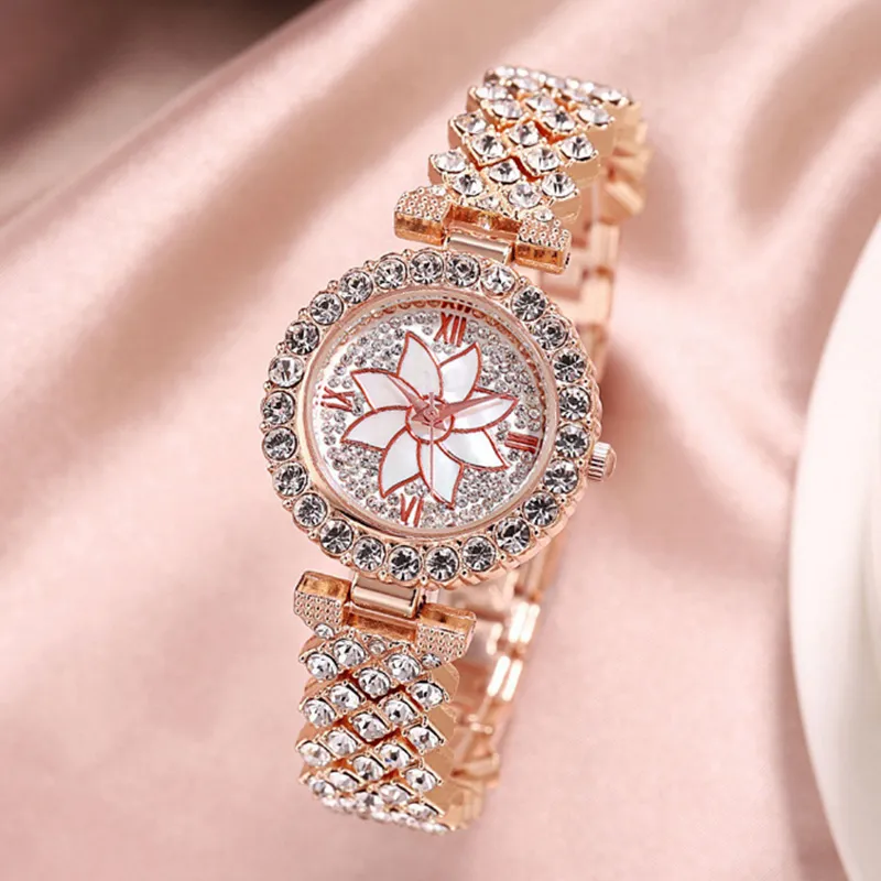 Fashionable Flower Design Stone Quartz Watch & Bracelet For Women 2Pcs Set