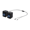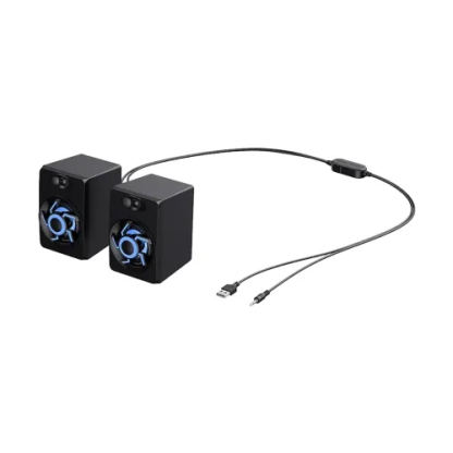 The Havit SK706 Stereo LED Backlit USB Speaker is a versatile audio device that combines aesthetics and functionality to enhance your audio experience. With its multi-color gradient LED backlighting, this speaker not only produces impressive sound but also adds a touch of vibrant ambiance to your workspace or entertainment area. The Havit SK706 speaker is designed to work seamlessly with a wide range of devices that have a 3.5mm audio out or headphone jack. Whether you want to connect it to your laptop, smartphone, tablet, or gaming console, this speaker has you covered. Equipped with a professional speaker unit, this device delivers outstanding audio quality. It boasts powerful bass, making it suitable for enjoying your favorite music, movies, or games with a rich and immersive sound experience. This speaker provides a total output power of 3W 2(RMS), ensuring clear and crisp audio playback. Whether you're listening to music or engaging in video conferencing, this speaker will deliver a sound that stands out. The Havit SK706 requires a DC 5V power input, which makes it energy-efficient and convenient to use. You can power it using a USB port on your computer or any compatible USB adapter. It features 2-inch*2 drivers, which contribute to its impressive sound performance. These drivers are optimized to produce a wide range of frequencies, resulting in a balanced audio output. The speaker has a frequency range of 30Hz to 15KHz, covering the full spectrum of sound frequencies. This ensures that you can enjoy everything from deep bass to clear trebles without any distortion. Compact Design: Measuring just 77 x 70 x 105mm*2, this speaker is compact and space-saving. Its sleek and modern design allows it to seamlessly blend into any setup, whether it's on your desk or beside your entertainment center. The Havit SK706 Stereo LED Backlit USB Speaker offers a perfect combination of style and functionality, making it an ideal choice for those who appreciate both great sound and visual appeal in their audio equipment. Whether you're working, gaming, or simply relaxing with your favorite tunes, this speaker will elevate your audio experience.