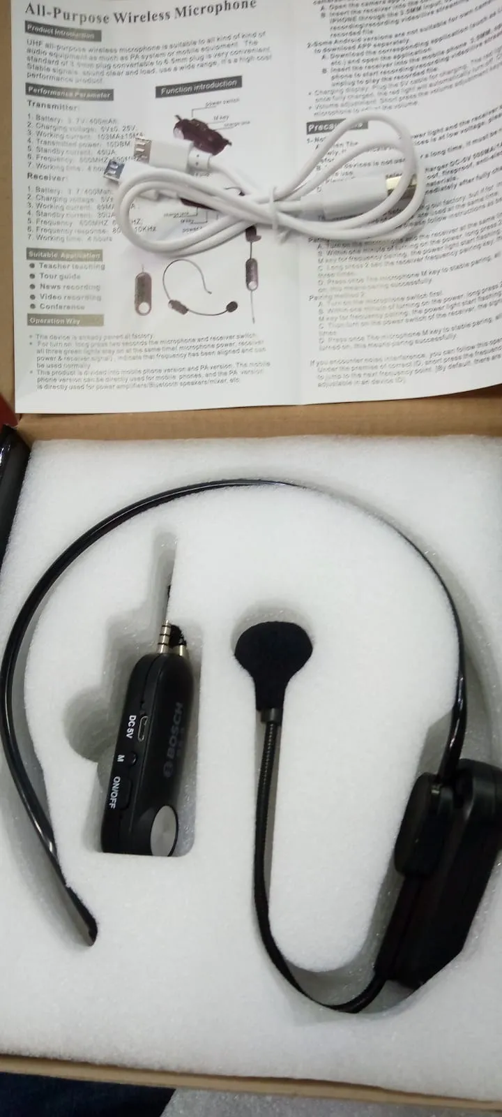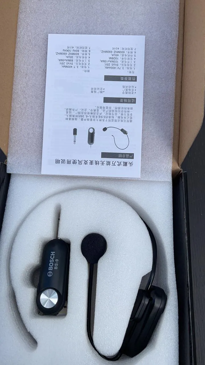 WIRELESS HEADSET BOSCH BS-9 BLUETOOTH MICROPHONE MOBILE SUPPORTED WITH CONVERTER FOR SPEAKER AMPLIFIER BLACK